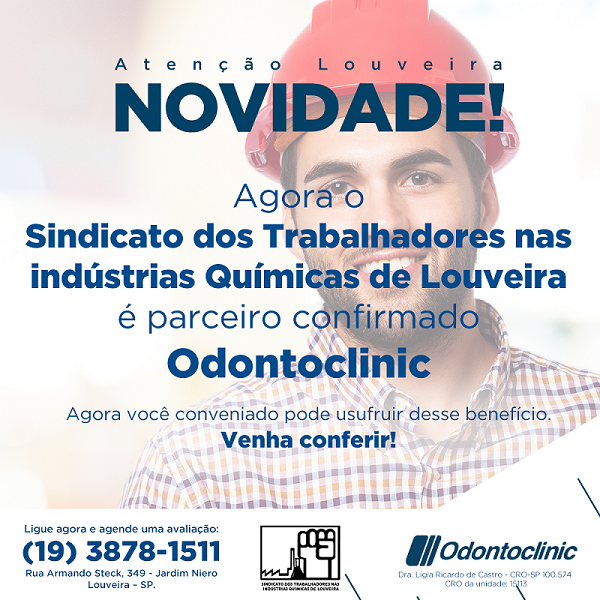 A saúde bucal é muito importante. O Sindicato dos Químicos de Louveira disponibiliza convênio odontológico com a Odontoclinic de Louveira para você associado. Venha Conferir!