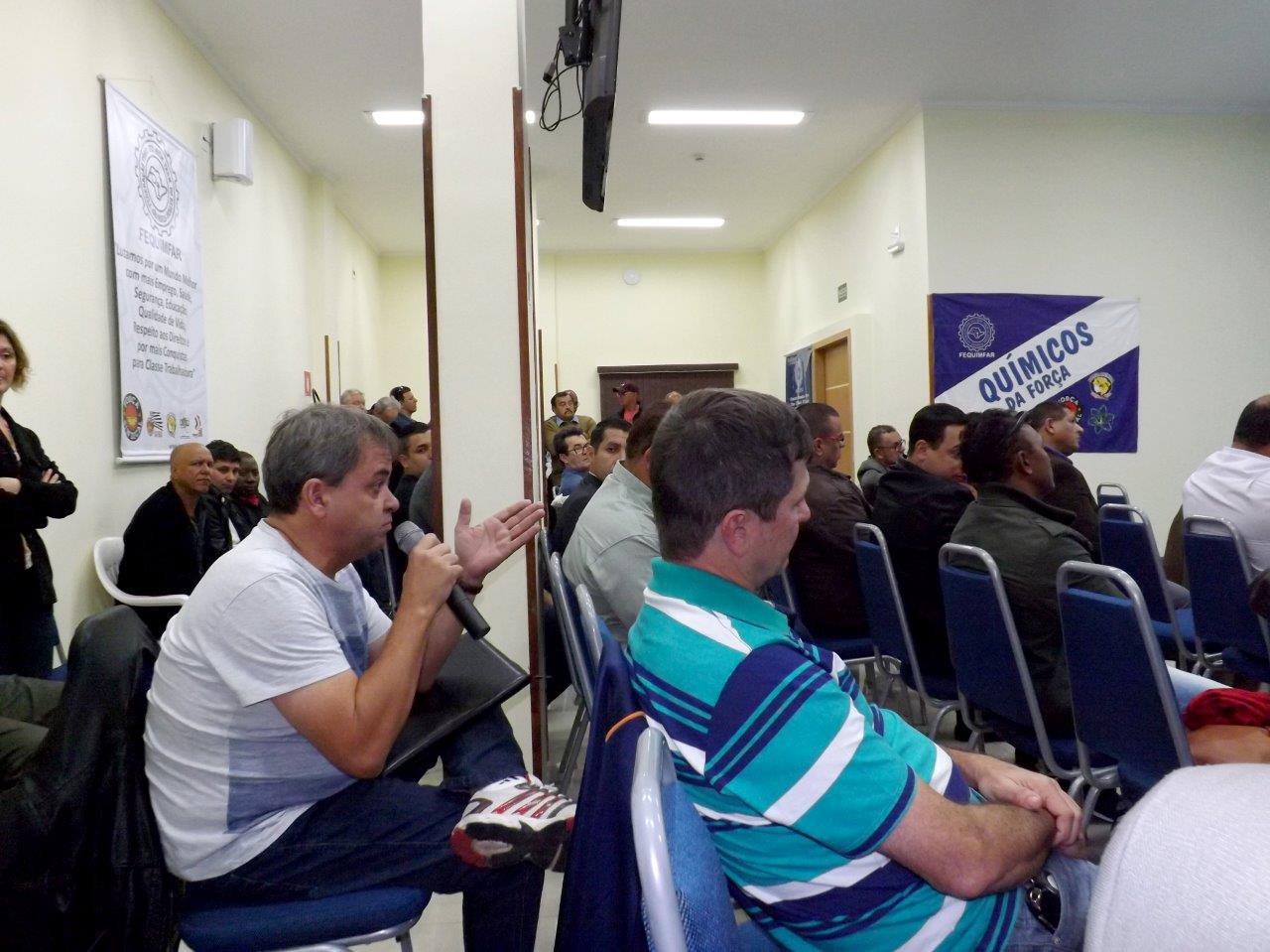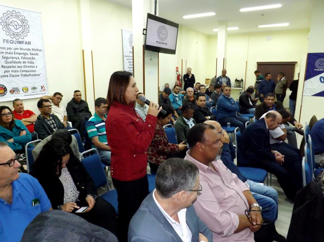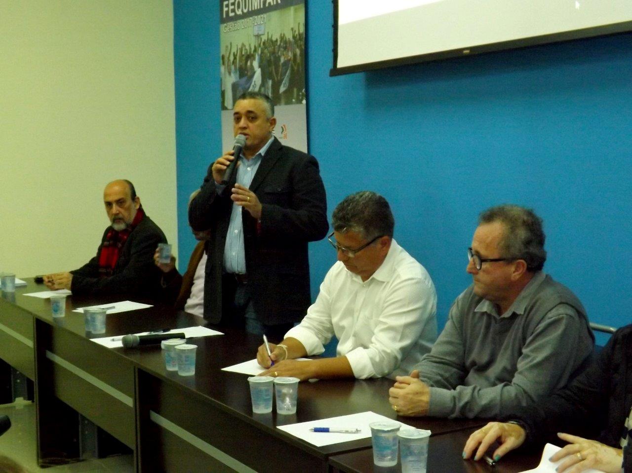 Jurandir Pedro de Souza, tesoureiro geral da FEQUIMFAR e presidente da FEQUIMFAR, fez um breve histórico da luta desde o SOS Federação e destacou o crescimento da entidade, da ação sindical e de todo o trabalho que os 33 Sindicatos filiados tem sido desenvolvido.