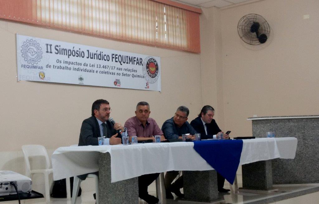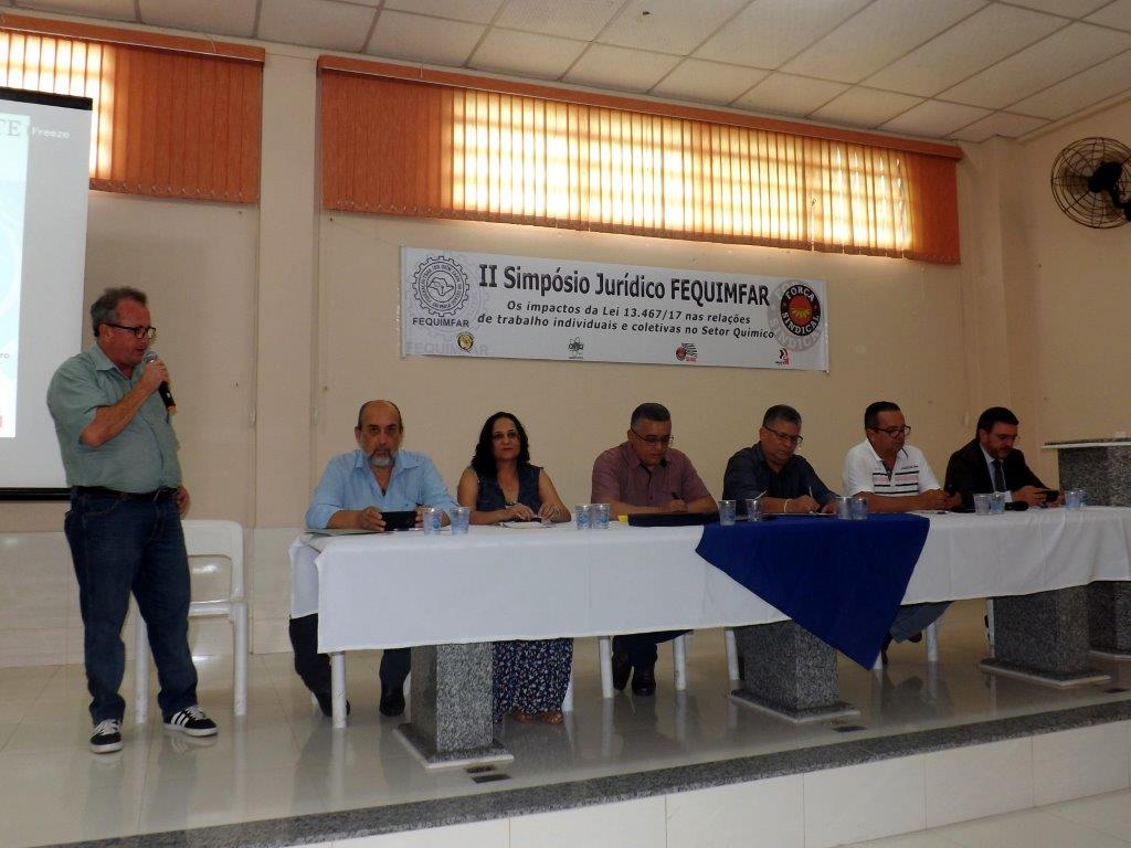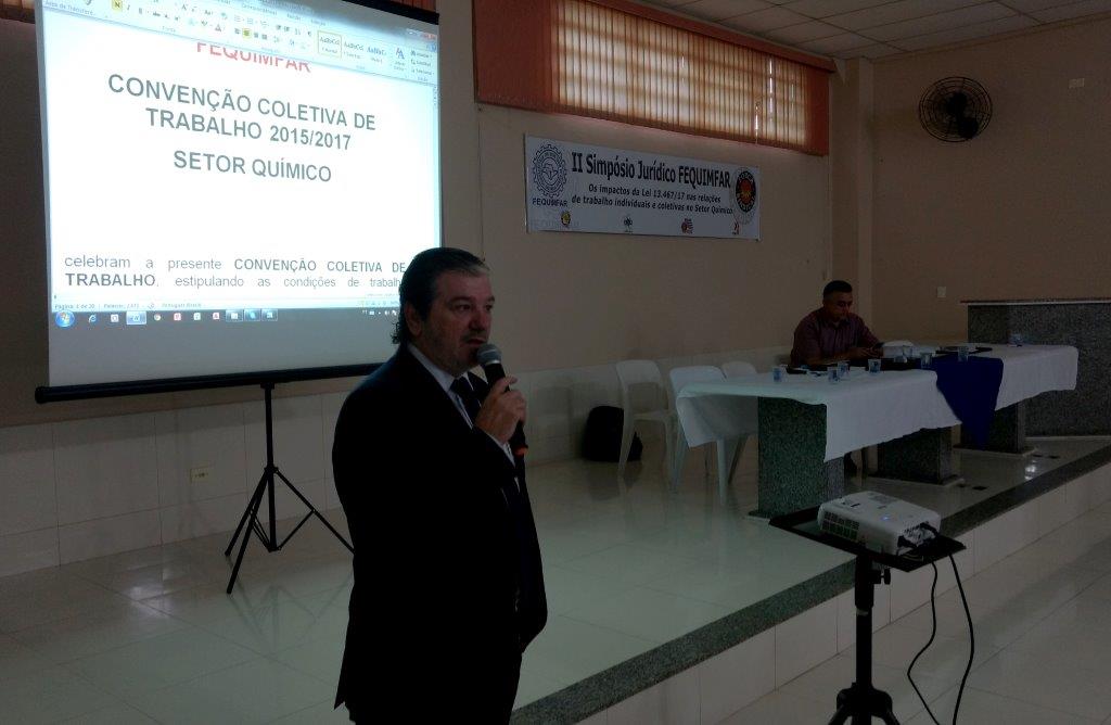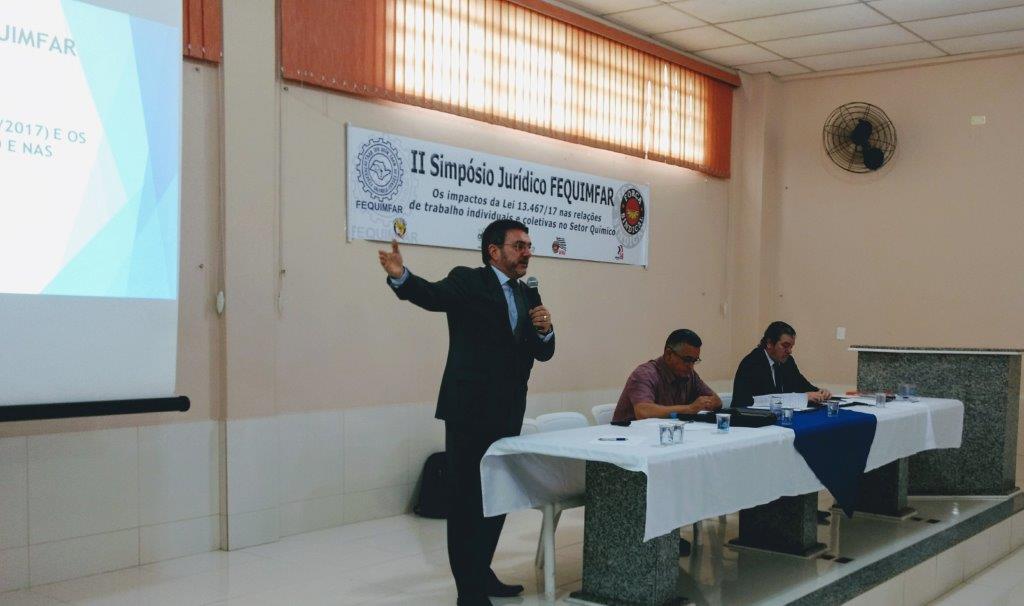 Cesar Augusto de Mello, consultor jurídico da FEQUIMFAR e presidente da Comissão de Direito Sindical da OAB SP, falou amplamente sobre alterações na lei trabalhista e pontuou questões que ainda são conflituosas e que merecem atenção.