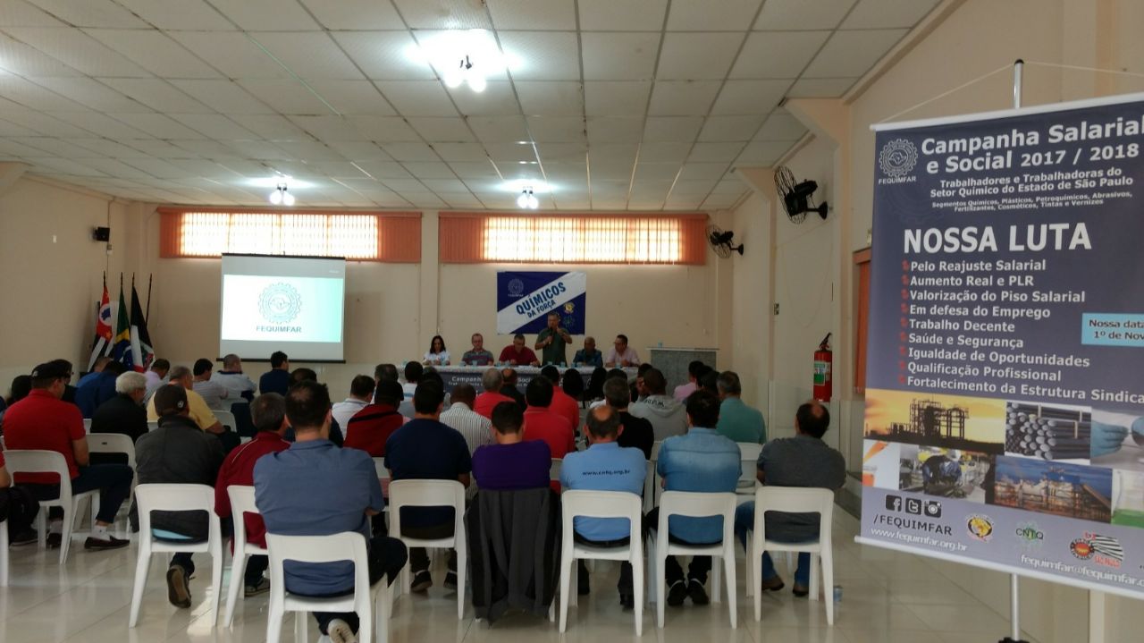 Até o dia 24 de setembro, dirigentes dos Sindicatos filiados, com apoio da FEQUIMFAR, CNTQ e Força Sindical, realizarão assembleias em toda a base para que os trabalhadores apreciem a pré-pauta de reivindicações.